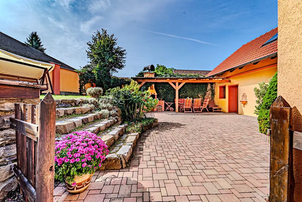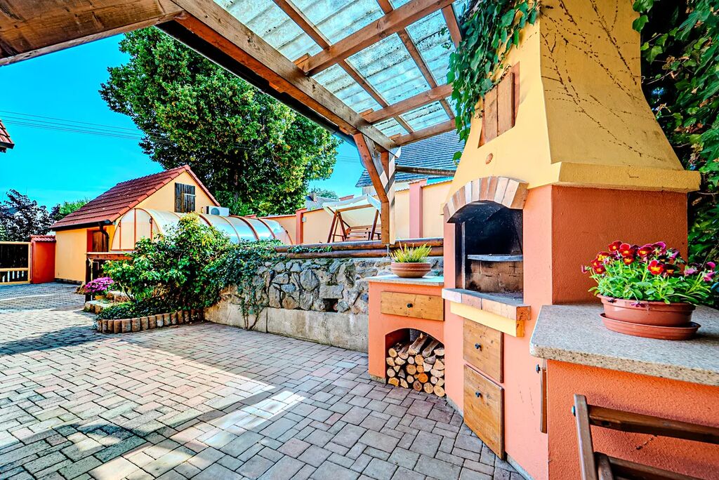 Zahrada o rozloze 385 m² poskytuje dostatek prostoru pro odpočinek i volnočasové aktivity. Najdete zde vyhřívaný krytý bazén, prostornou pergolu a zahradní kuchyni s grilem, ideální pro setkávání s přáteli a rodinou.