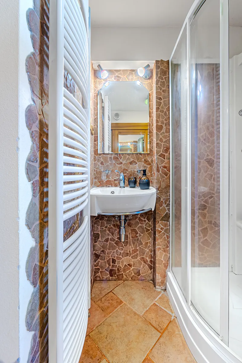 Vytápění je řešeno ústředním topením – elektrokotlem nebo krbovými kamny s výměníkem.
