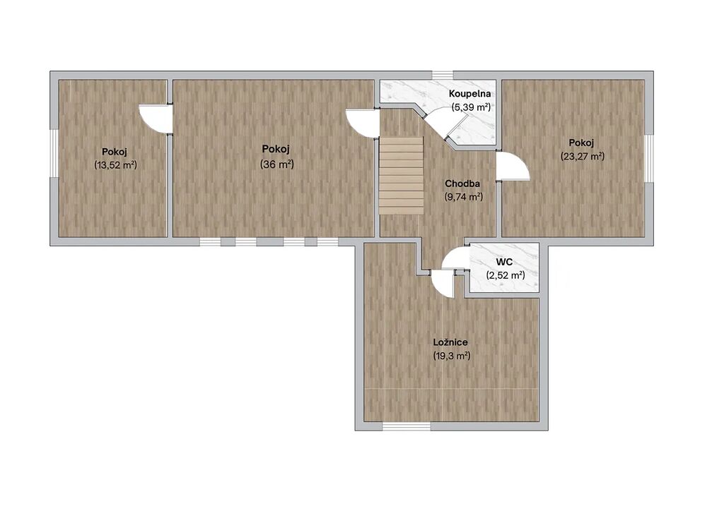 Patro nabízí čtyři pokoje, druhou koupelnu s vanou a samostatné WC.