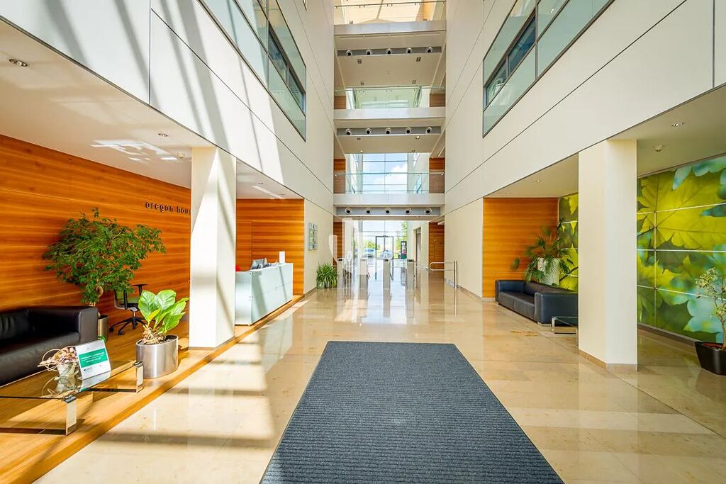 Nabízíme kanceláře k pronájmu na Praze 5. Administrativní budova Oregon House se nachází v čím dál atraktivnější části Prahy na Zličíně. Tato moderní budova byla koncipována tak, aby nájemci a jejich klienti měli k dispozici příjemné místo k práci a zároveň mohli využívat nejmodernější technologie. Splňuje tak vysoké nároky klientů, ať už jsou jakékoliv. Díky své strategické poloze disponuje budova výbornou dopravní dostupností, a proto se jeví jako ideální volbou pro moderně smýšlející společnosti. Od pražského letiště Václava Havla je objekt vzdálen pouhých 5 minut autem. Zároveň však nalezneme v bezprostředním sousedství budovy stanici metra Zličín trasy B, několik autobusových linek MHD i zastávky dálkových autobusů. Rovněž občanská vybavenost je na velmi vysoké úrovni, a to především díky nákupnímu centru Metropole Zličín, které se nachází naproti od budovy. Uvedené fotografie se mohou lišit od nabízených jednotek v objektu.