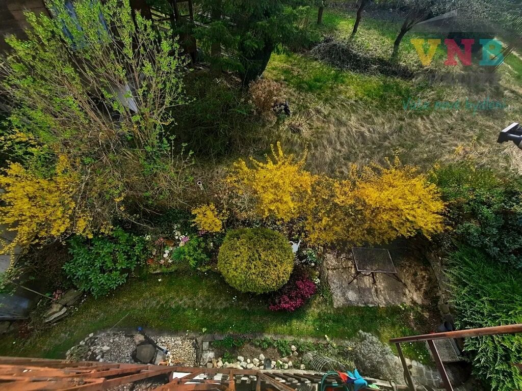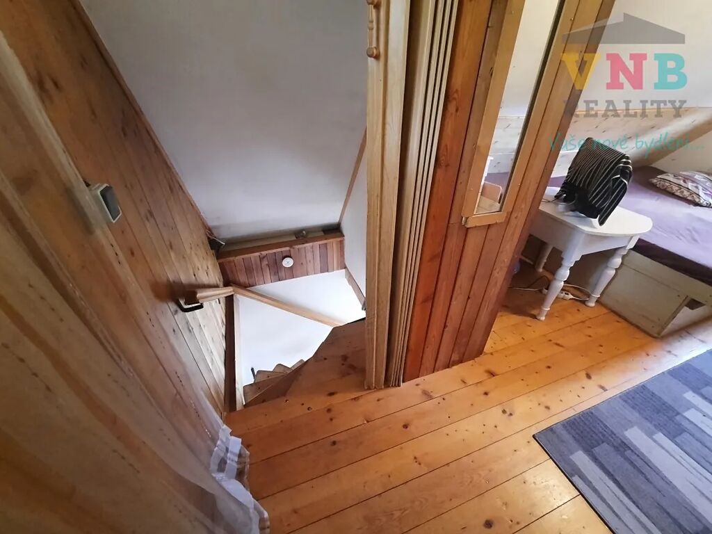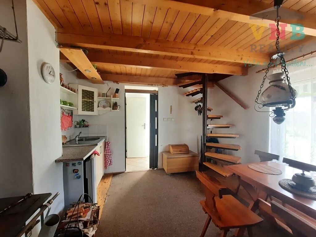 • V přízemí se nachází chodba, samostatné WC, obývací prostor s kuchyňským koutem a kamny, které navodí příjemnou atmosféru zejména v chladnějších dnech. Na kuchyni navazuje samostatný pokoj orientovaný do zahrady. Z kuchyně vede schodiště do podkroví