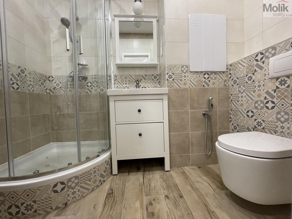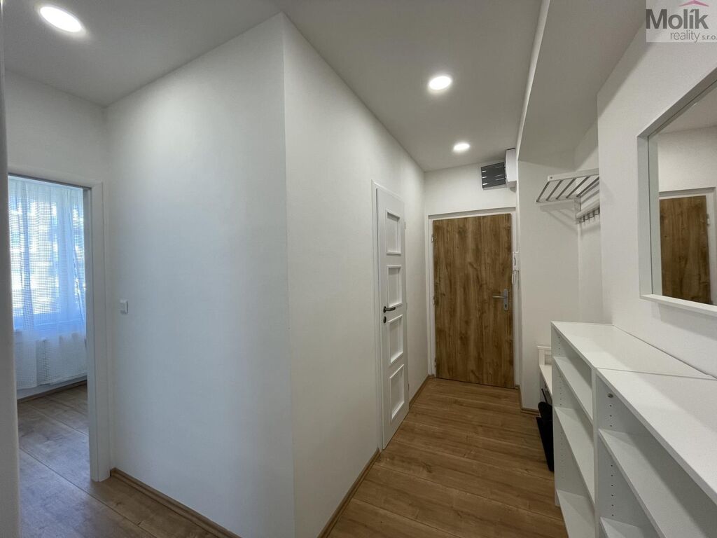 - nová kuchyňská linka s vestavěnými spotřebiči (horkovzdušná trouba, indukční varná deska, digestoř, myčka, mikrovlnná trouba), zděná koupelna se sprchovým koutem (umyvadlo se skříňkou + zrcadlo, toaleta + bidetová sprška, keramický obklad a dlažba), v celém bytě je položena plovoucí podlaha, štuky, nové vnitřní dveře, lustry, nové elektro rozvody, v chodbě je snížený strop