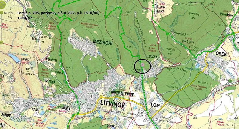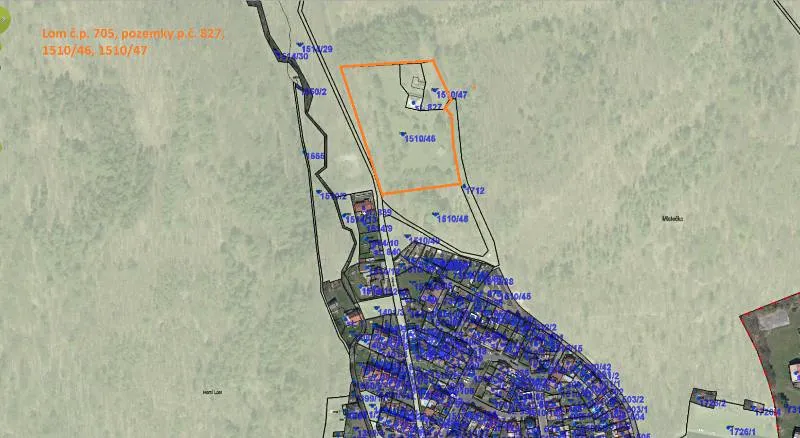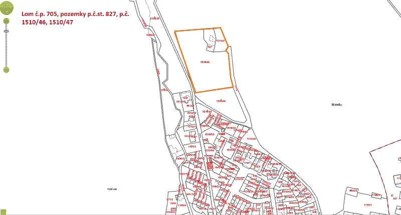 Prodej pozemku p.č.st. 827, druhem pozemku zastavěná plocha a nádvoří o výměře 804 m2, jehož součástí je stavba rodinného domu č.p. 705, pozemku p.č. 1510/46, druhem pozemku ostatní plocha o výměře 8 409 m2 a pozemku p.č. 1510/47, druhem pozemku ostatní plocha o výměře 869 m2 v k.ú. Lom u Mostu. Pozemky vč. stavby se nachází v severní okrajové části Města Lom. Přístup na pozemky je po zpevněné komunikaci. Budova je v nevyhovujícím technickém stavu, samostatně stojící. Severně od domu je torzo vyhořelé vedlejší stavby. Objekt je napojený na přípojku vody, elektřiny, kanalizace je svedena do žumpy. Stavba je podsklepená, s jedním nadzemním podlažím a podkrovím. V prvním nadzemním podlaží a podkroví je byt s příslušenstvím. Pozemky jsou mírně sklonité směrem k jihu, částečně oplocené.