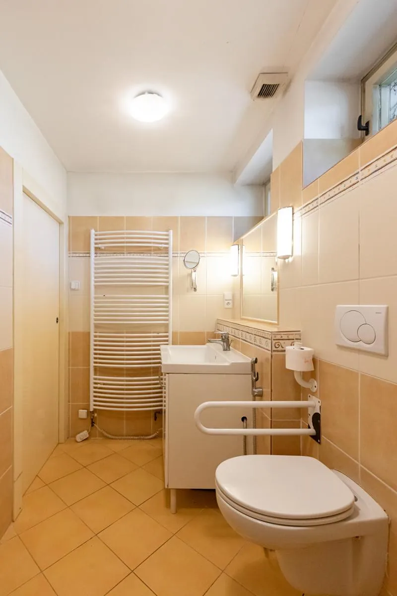 Ve zvýšeném přízemí se nachází dvě prostorné ložnice a koupelna se sprchovým koutem.