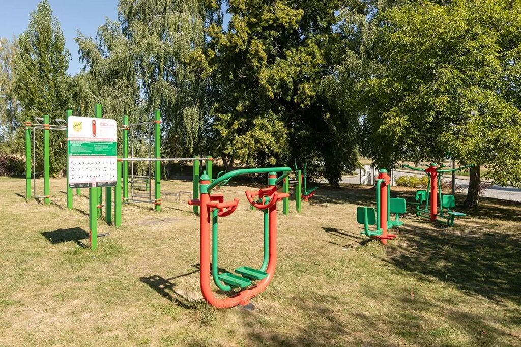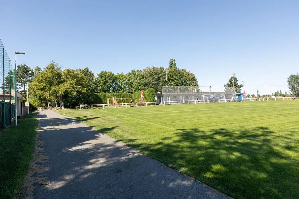 Velkou výhodou je rovněž přilehlé fotbalové hřiště, kde je možné si jít kdykoliv zakopat či zaběhat s dětmi. Hned vedle je dětské hřiště s pískem, prolézačka a houpačky. Na druhé straně fotbalového hřiště je basketbalové hřiště, venkovní posilovna a stoly na ping pong.