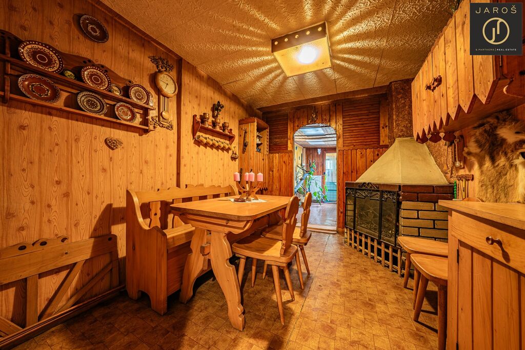 V přízemním přístavku se nachází kuchyně a koupelna. Po několika schodech vstoupíte do hlavní části domu, kde se nachází jídelna s krbem, samostatné WC a dva pokoje. V podkroví je další pokoj a zároveň prostor pro případné rozšíření obytné plochy.