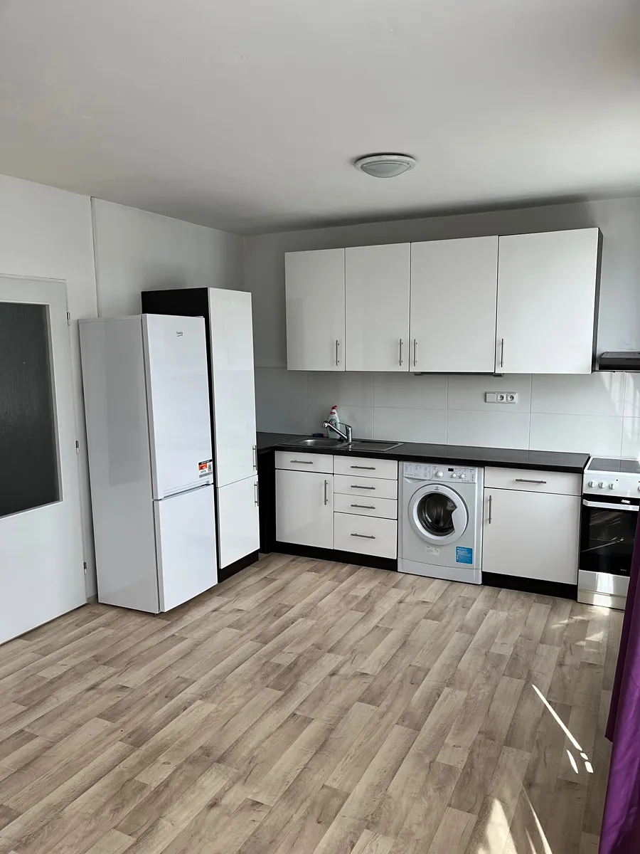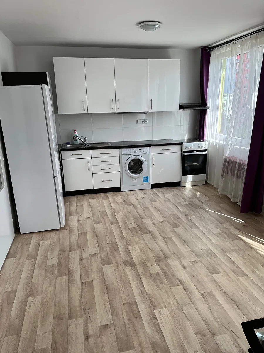 Byt s plochou 31 m2 je orientován na východ s krásným výhledem do parku. Byt je nabízen zařízený, k dispozici kuchyňská linka se sporákem, pračkou, lednicí a digestoří. Dále lůžko s nastavitelnou šířkou 80 až 140 cm, 2x skříň, obývací stěna (chybí pouze sedací souprava a jídelní stůl se židlemi). V předsíni dostatek úložného prostoru ve vestavěné skříni. V koupelně je sprchový kout, toaleta je samostatně. Na podlaze dlažba a plovoucí podlaha.