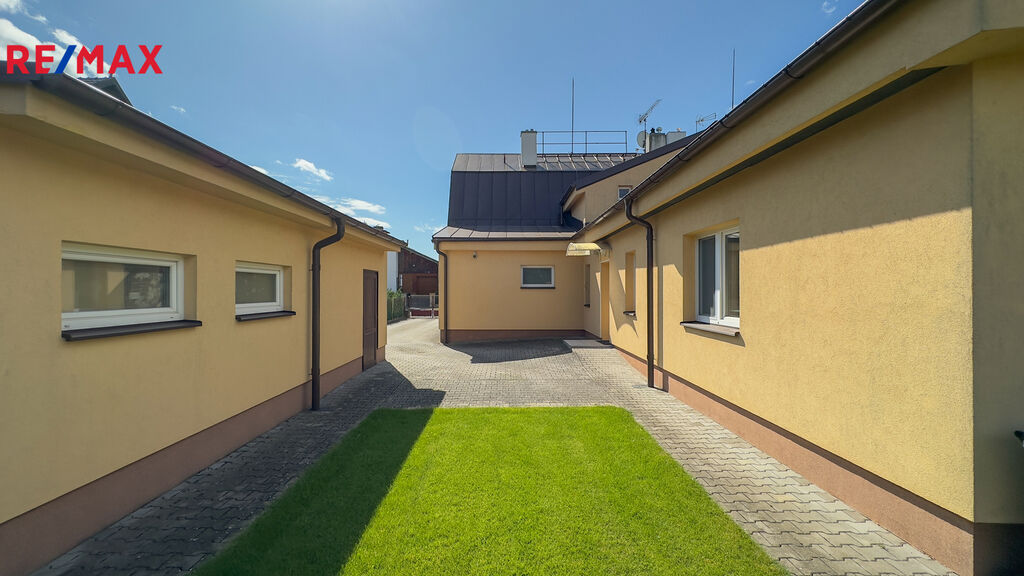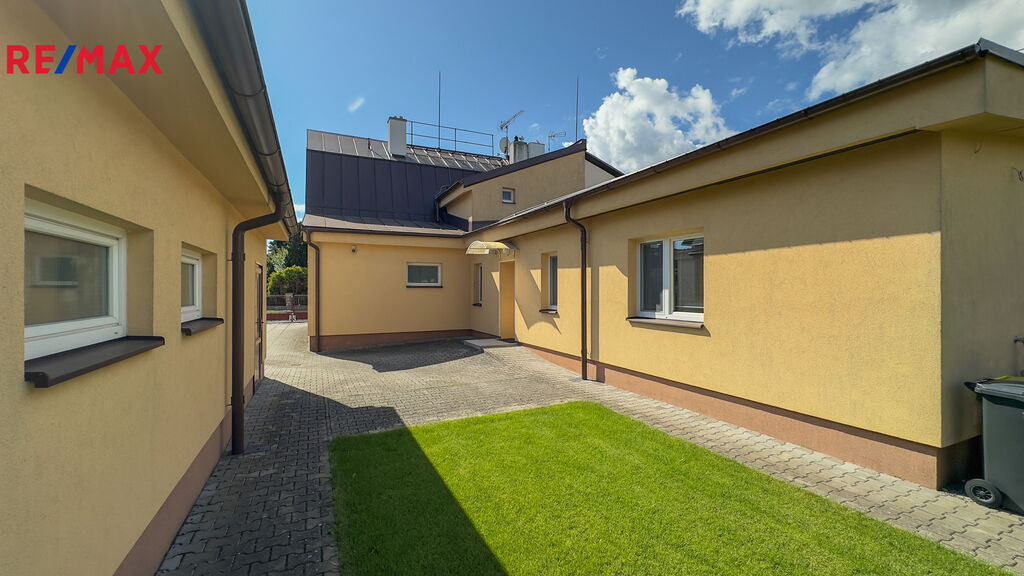 Dům je dvoupodlažní, částečně podsklepený, se zastavěnou plochou 144 m² a pozemkem o celkové výměře 479 m².