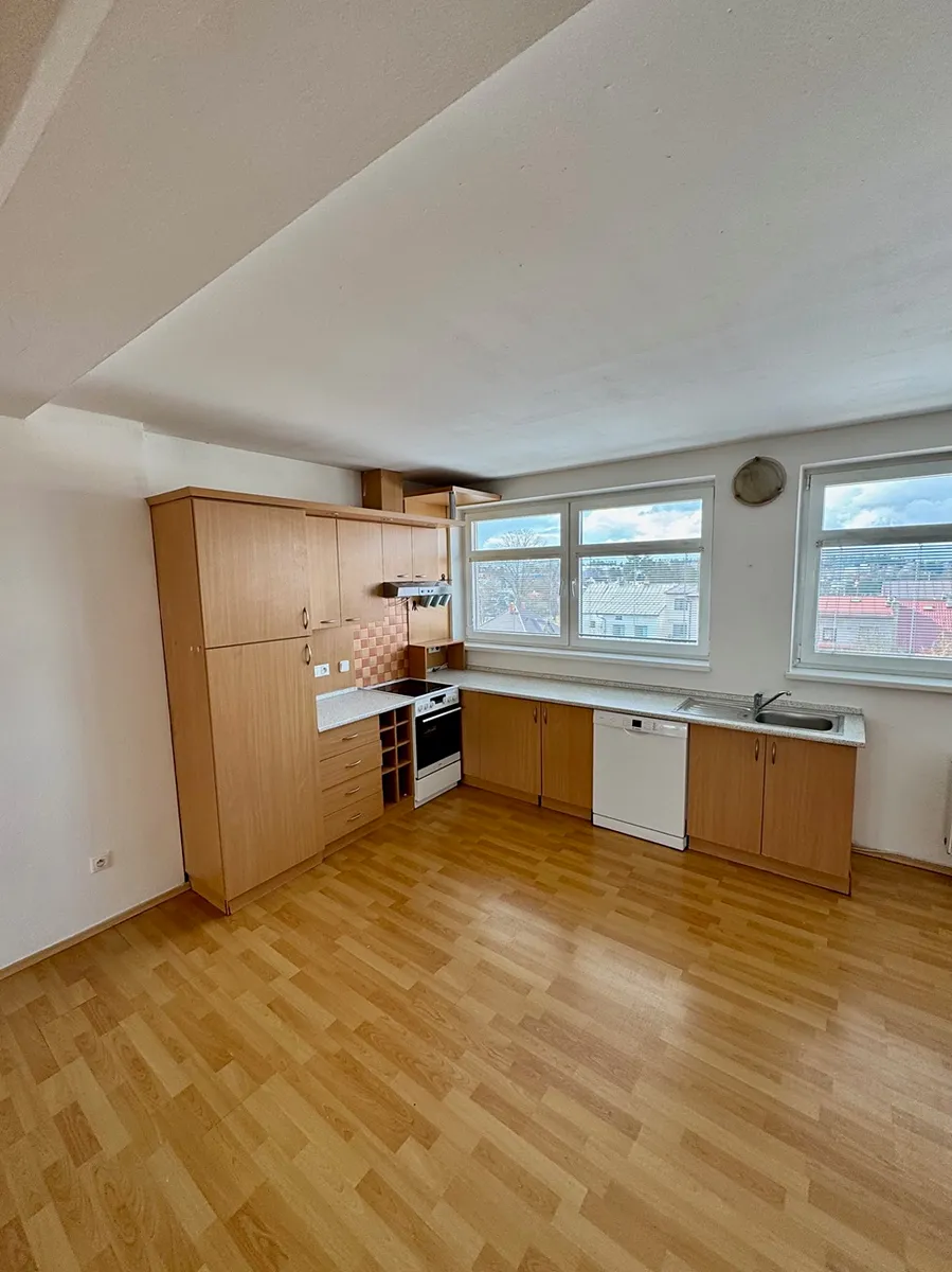 Nabízíme k dlouhodobému pronájmu jedinečný půdní byt 3+kk o rozloze 94 m². Dominantou bytu je velký obývací pokoj s krbovými kamny a odhalenými trámy, které dodávají interiéru příjemnou atmosféru.