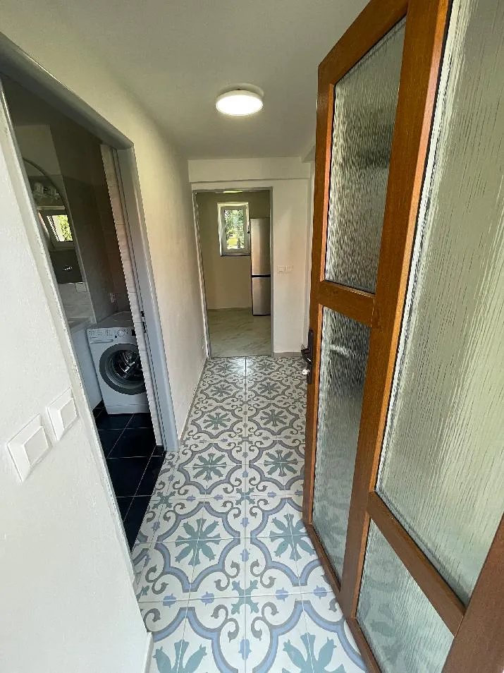 V přízemí domu se nachází velice prostorná koupelna, chodba, obývací pokoj s kuchyňským koutem a jeden menší pokoj. Pokoje jsou průchozí.