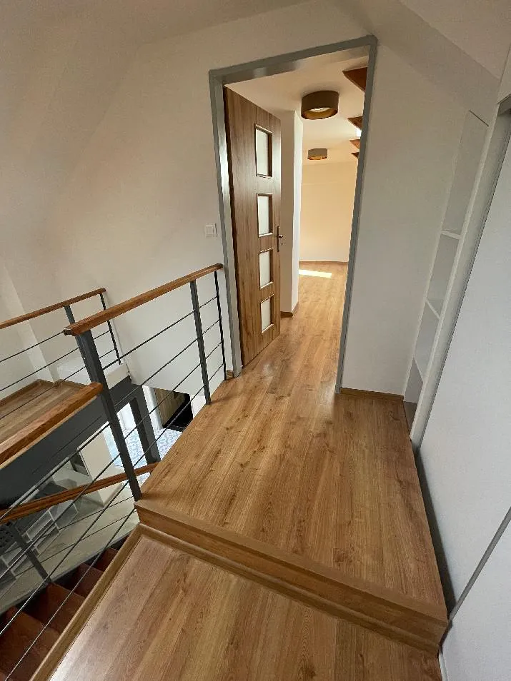 Jedná se o samostatně stojící dvoupodlažní dům nedaleko centra města. Dispozičně se jedná o byt 4+kk s garáží, sklepem a částí zahrady. Dalším bonusem je 1 parkovací místo ve dvoře, další parkovací místa v blízkosti domu. Připravujeme k užívání vlastní prostor pro uložení věcí a část záhonu pro pěstování květin, zeleniny apod. Garáž bude k užívání od 1/2026.