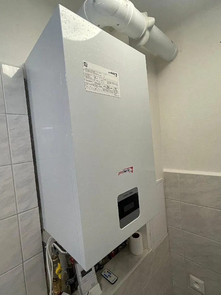Topení a ohřev vody zajišťuje plynový kondenzační kotel.