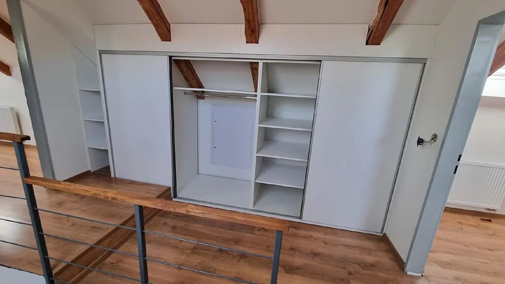 Podkroví disponuje dvěma pokoji a chodbou s prakticky řešenou vestavěnou skříní.