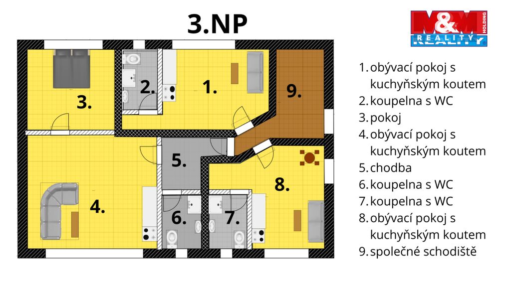 Nabízíme k prodeji dům v Otrokovicích, vhodný pro investory hledající kombinaci bydlení a podnikání. Nemovitost se nachází na hlavní třídě v blízkosti centra a nabízí různě velké jednotky k bydlení na třech nadzemních a jednom podzemním podlaží. V přízemí se nacházejí komerční a obytné prostory. V suterénu a horních patrech je sedm samostatných obytných jednotek, každá s vlastním sociálním zařízením a kuchyňským koutem. Obytné prostory v suterénu mají přístup ke dvěma terasám. K dispozici je uzamčený dvůr s garáží, skladovými prostory a dvěma parkovacími místy. Celková užitná plocha činí 422 m², pozemek má rozlohu 489 m². Dům je v dobrém technickém stavu a připraven k využití. Nabízí stabilní zázemí pro víceúčelové využití.