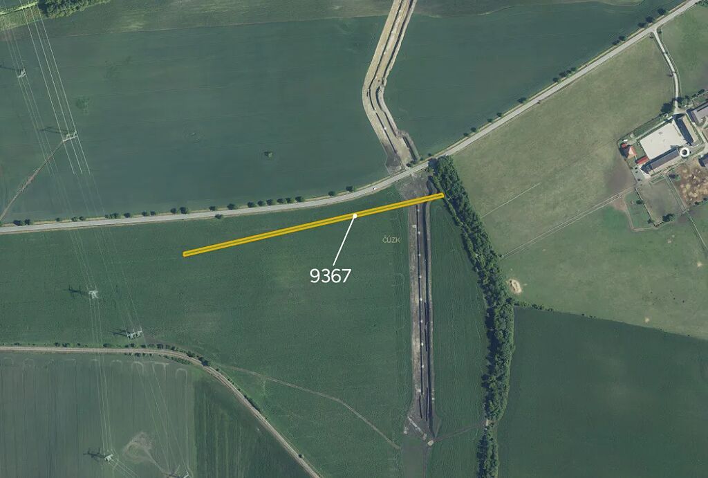 Parcela č. 9367 o výměře 2 113 m2, vedená jako orná půda.
