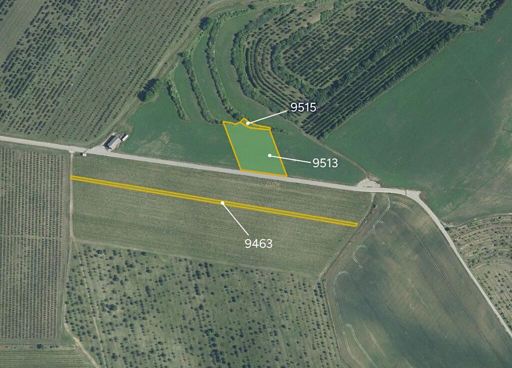 Parcela č. 9463 o výměře 1 036 m2, vedená jako vinice.