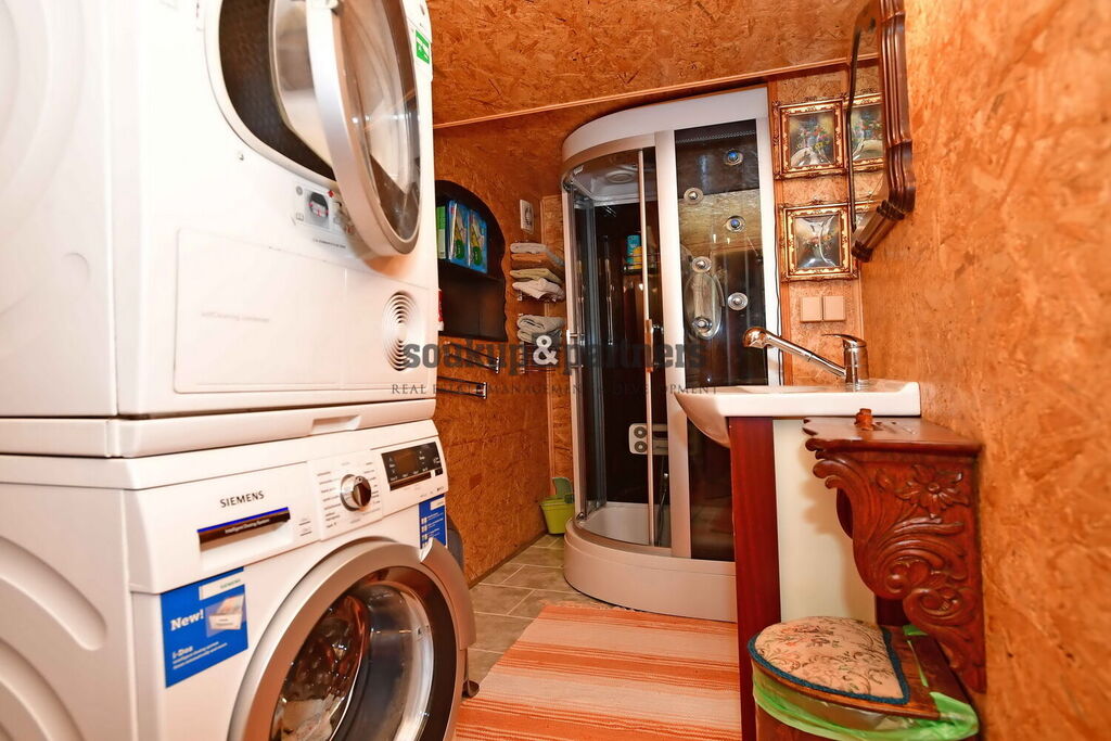 Rodinný dům 4+1 + balkon, 170 m2, pozemek 1.247 m2, který se nachází v obci Chýňava, okr. Beroun. Jedná se o částečně zděnou stavbu po kompletní rekonstrukci. Dispozice domu: 1.NP - sauna, kuchyňská linka se spotřebiči (myčka, indukční varná deska, lednice s mrazákem), koupelna se sprchovým koutem a místem na pračku, samostatné WC, technická místnost (kotel na tuhá paliva, bojler), 2.NP - hlavní vstup do domu, obývací pokoj, kuchyň s jídelním stolem a kuchyňskou linkou se spotřebiči (horkovzdušná trouba se sklokeramickou varnou deskou, myčka, digestoř, lednice s mrazákem), ložnice, koupelna s rohovou vanou a WC, 3.NP - 2x pokoj, balkon a půda. Dům je připojen na elektřinu, vytápění kotlem 5 třídy na tuhá paliva, teplá voda zajištěna bojlerem. Odpad je řešený čističkou odpadních vod a voda je užívána z vlastní kopané studny. Na pozemku se nachází pergola s krbem, terasa s posezením, zahradní domek, dílna a přístřešky na dřevo. Dům je přístupný autem, možnost parkování 2 vozidel na vlastním pozemku v horní části parcely, popřípadě také na vlastním pozemku na spodní parcele. Stavba má sice číslo evidenční, jedná se o rekreační objekt, ale je vhodná k celoročnímu bydlení a je zde možné mít trvalý pobyt. Dobrá dopravní dostupnost - Unhošť 5 minut, Praha 15 minut autem. Veškerá občanská vybavenost v okolí - 6 km Unhošť, popř. cca 12 km Beroun - Kladno. Pro více informací kontaktujte manažera nabídky. Z důvodu, že před zadáním do inzerce nebyl k dispozici platný PENB, je tato nemovitost v souladu s platným zákonem dočasně do jeho předložení zařazena do energetické třídy G.