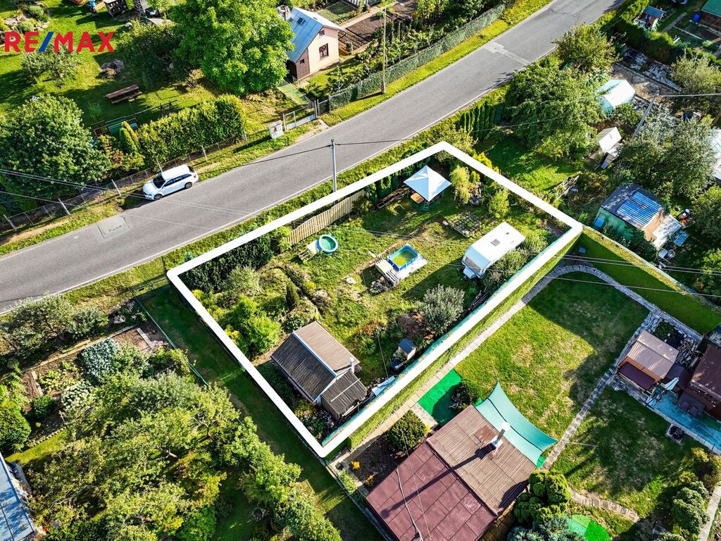 Součástí pozemku je zděná zahradní chata o zastavěné ploše 16 m², která v současnosti slouží jako sklad nářadí a místo k odpočinku. Chata je částečně podsklepená a nabízí možnost přestavby pro celoroční využívání.