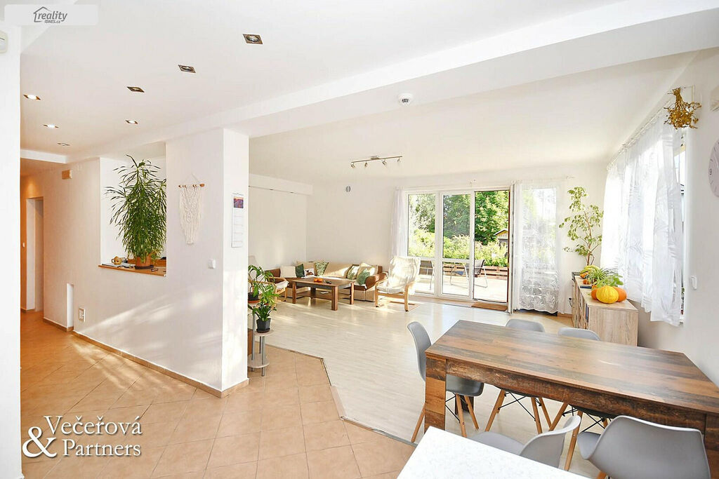 Pronájem krásného světlého bytu 4+kk, 110 m² + 59 m² terasa + parkovací stání v přízemí patrového rodinného domu ve vyhledávané lokalitě poblíž Klánovického lesa.