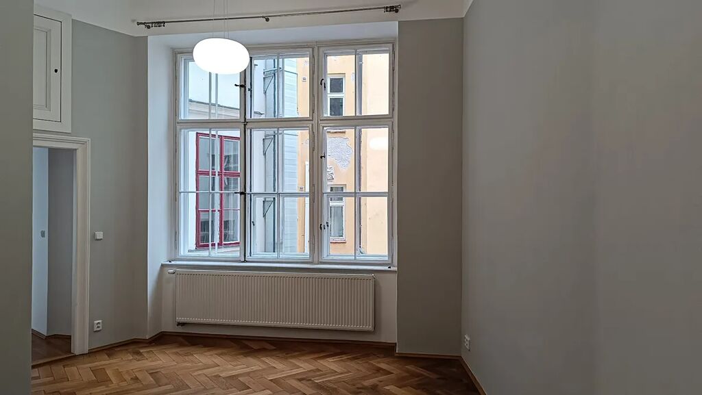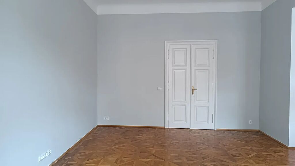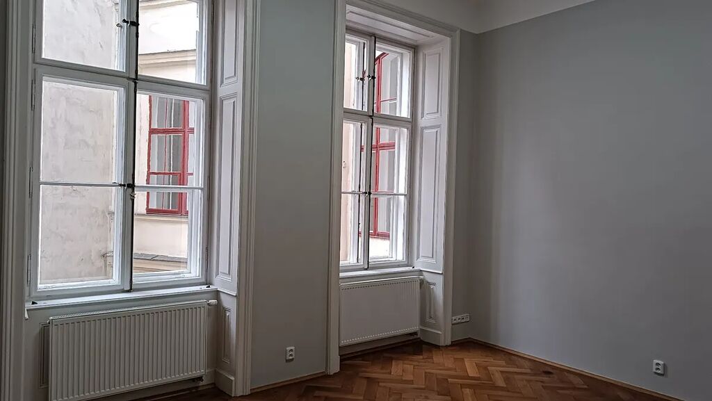 Nabízíme k pronájmu prostorný, luxusní byt 3+kk o výměře 125 m2, po kompletní rekonstrukci ve druhém nadzemním podlaží cihlového domu s výtahem ve Vodičkově ulici v Praze 1. Byt tvoří obývací pokoj s kuchyňským koutem, který má okno, dva neprůchozí pokoje, dvě koupelny z nichž jedna je s vanou, druhá se sprchovým koutem a samostatné WC s umyvadlem. Je zařízený novou kuchyňskou se spotřebiči – sklokeramická deska, elektrická trouba, lednice s mrazákem, pračka a šatní skříně v šatně. Velká špaletová okna z obývacího pokoje a kuchyně jsou orientovaná do Vodičkovy ulice, okna z obou pokojů jsou do klidného vnitrobloku. Na podlahách jsou v pokojích a v předsíni parkety, v koupelně a na WC je dlažba. Topení a ohřev vody je zajištěn vlastním plynovým kotlem. Výborná lokalita v centru Prahy, Václavské náměstí je cca 5 minut chůze od domu. Neplatíte provizi RK. Volný od 1.10. 2025.