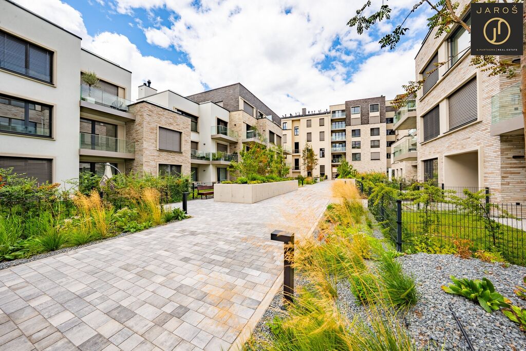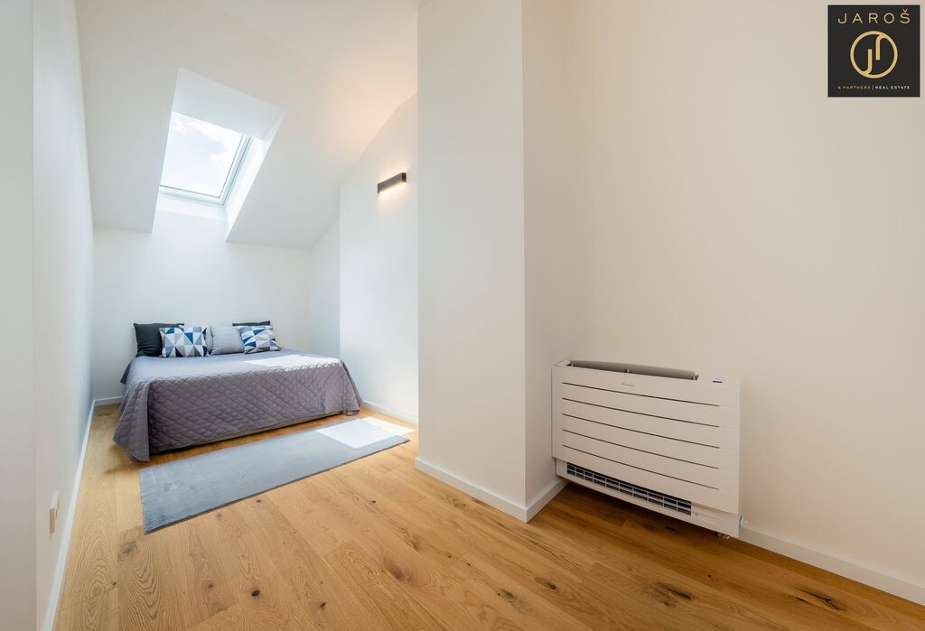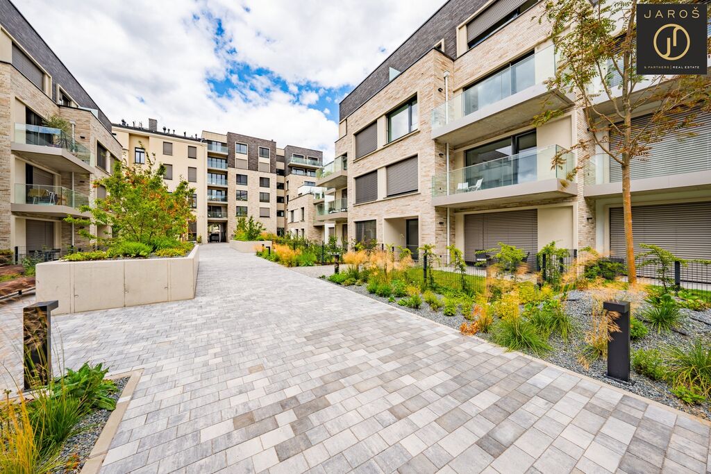 Nechybí ani klimatizační jednotka Daikin, rekuperace vzduchu, venkovní rolety a chytrá domácnost, kterou lze ovládat na dálku včetně klimatizace. Vysoký komfort bydlení doplňuje přístup na soukromou zahradu ve vnitrobloku, která je určena výhradně pro obyvatele domu. Celý areál je zabezpečen kamerovým systémem.