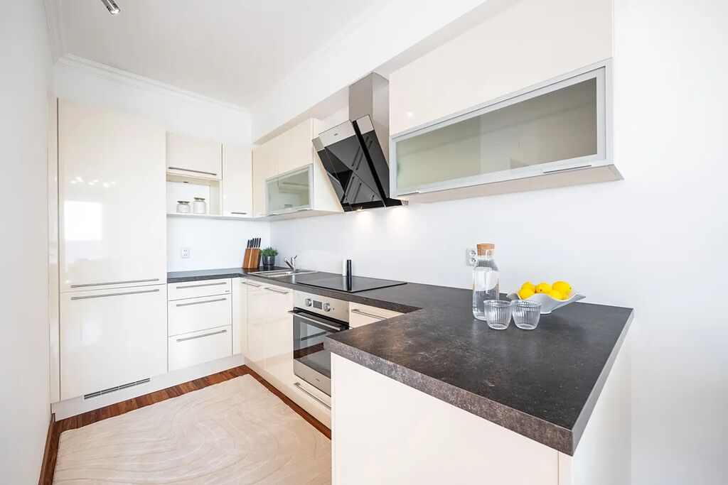 - plně vybavená kuchyňská linka s vestavěnými spotřebiči