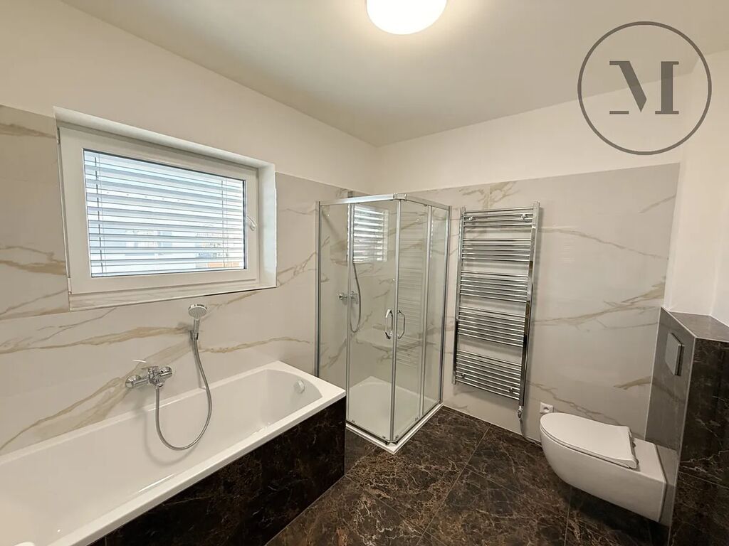 Nabízíme k pronájmu exkluzivní novostavbu rodinného domu o dispozici 5+kk a podlahové ploše 143 m2. Dům se nachází v klidné části obce Roudné, okres České Budějovice, na pozemku o rozloze 273 m2 s krásnou zahradou o velikosti 165 m2 a terasou 10 m2. Objekt je dvoupodlažní, na rohu umístěný a je vybaven moderními prvky, jako je kuchyňská linka, sporák, sprchový kout, vana a myčka. Na fotce jsou vidět šatny již vybavené nábytkem- budou součástí nájmu. Vytápění je zajištěno plynovým kotlem s podlahovým vytápěním. K dispozici jsou dvě parkovací místa, včetně garaže. Nemovitost je napojena na veřejnou kanalizaci a dálkový vodovod. Nájemné 35.000,- Kč/měsíčně, Poplatky za služby činí 4500 Kč/měsíčně, Provize RK 35.000,- plus DPH, kauce 52.500,- Kč . K dispozici od 1. 10. 2025. Pro více informací kontaktujte makléře Zdeňka Jeřábka.
