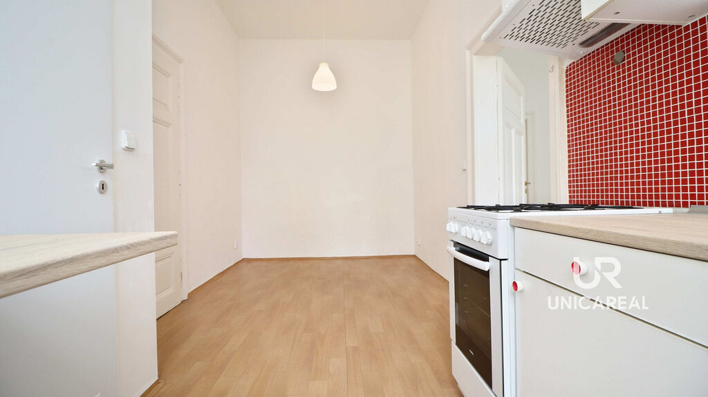 Stylový byt s vysokými stropy a dvoukřídlými dveřmi je situovaný ve 2. N. P. a má celkovou užitnou plochu 85,5m². Nabízí se nezařízený. Je zde pouze kuchyňská linka, plynový sporák, el. trouba, digestoř a příslušenství v koupelny a WC.