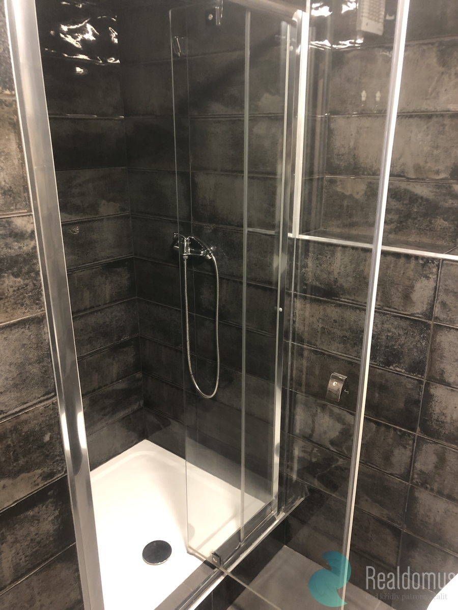 Kuchyňská linka disponuje vestavnou troubou, lednicí, varnou deskou, digestoří a pračkou. Na podlaze dlažba a dřevěné kvalitní parkety. Koupelna vybavena sprchovým koutem a toaletou. V chodbě umístěn úložný prostor, internet k dispozici.