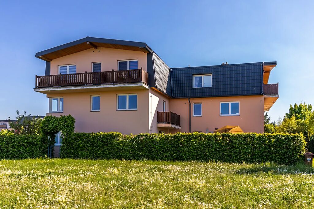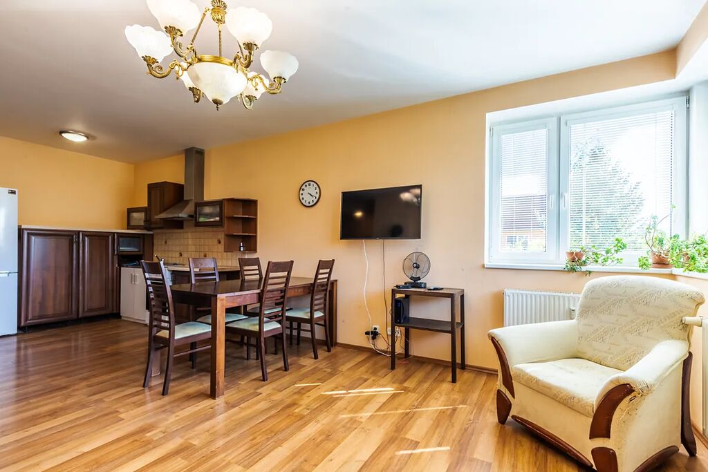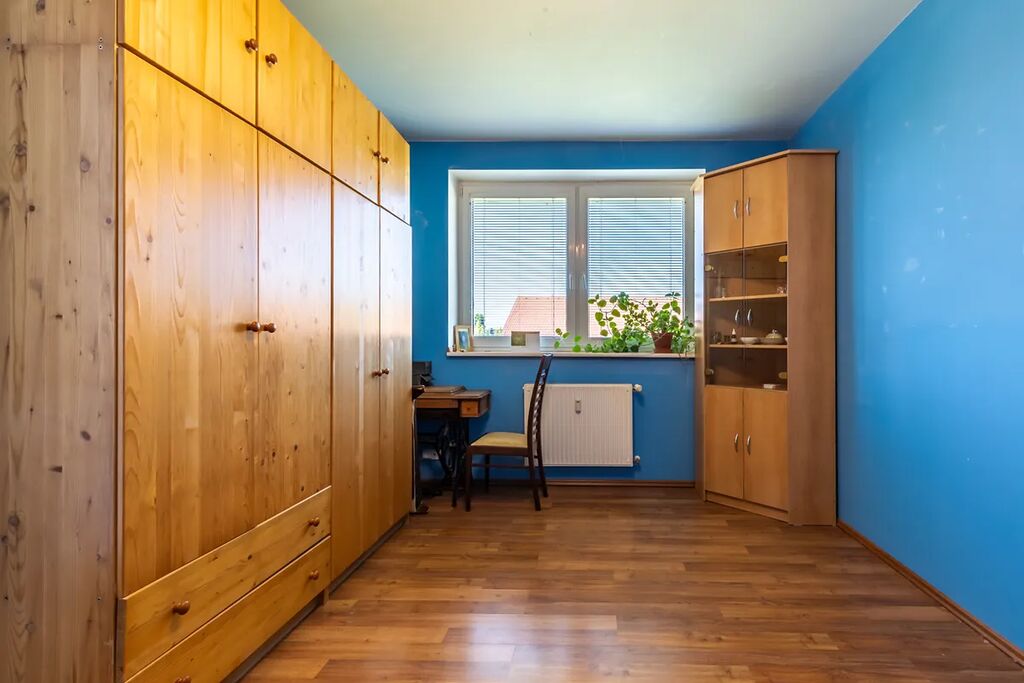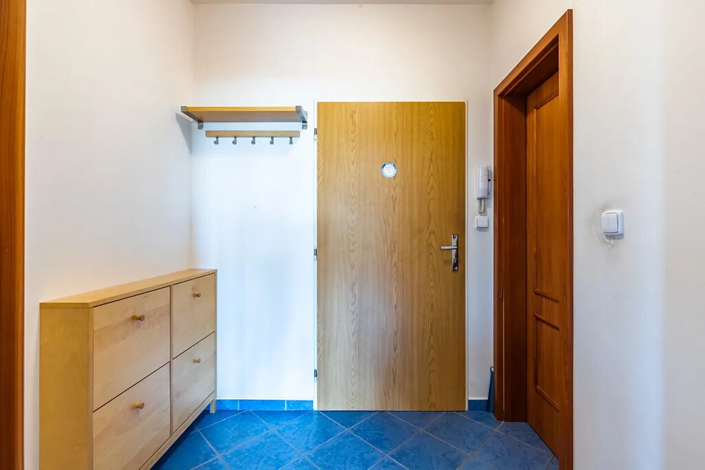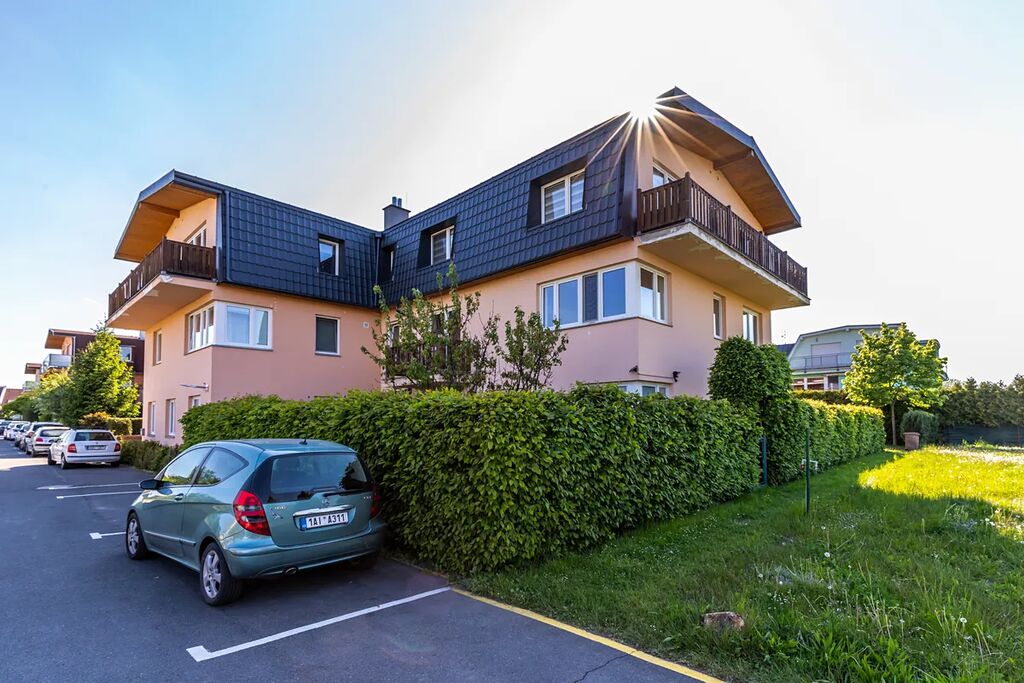 K bytu náleží sklepní kóje 3m2, vlastní garážové stání a navíc užívací právo k zahrádce o ploše cca 120m2 s vlastním přístupem.