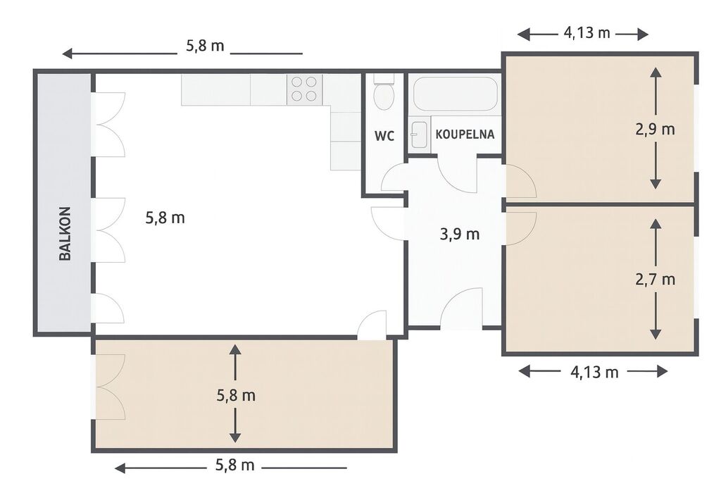 Podlahová plocha 81,6 m² + lodžie 5,65 m² + sklepní kóje 4,55 m²