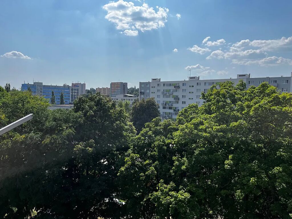 Díky velkým oknům působí velmi vzdušně a nabízí příjemný výhled do zeleně i na okolní zástavbu. K bytu náleží také sklep.