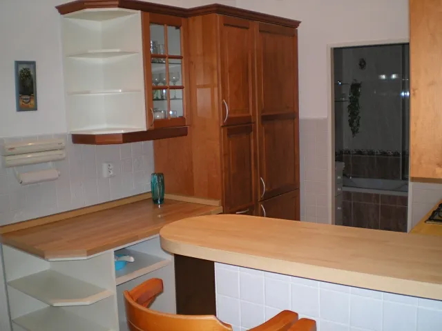 Nabízíme k pronájmu velice hezký byt po rekonstrukci v centru města, zařízený nábytkem s patrem na spaní. Kuchyňská linka, sklo-keramická deska, lednice, myčka nádobí, kabelovka. Jeden pokoj je průchozí. Koupelna s masážní vanou. Okna do tichého vnitrobloku. Maximálně pro 6 osob. Pes a děti nevadí. Kauce vratná 33400 Kč a provize rk 28900 Kč. Hezké bydlení-doporučujeme prohlídku. Volné ihned. Dlouhodobě.