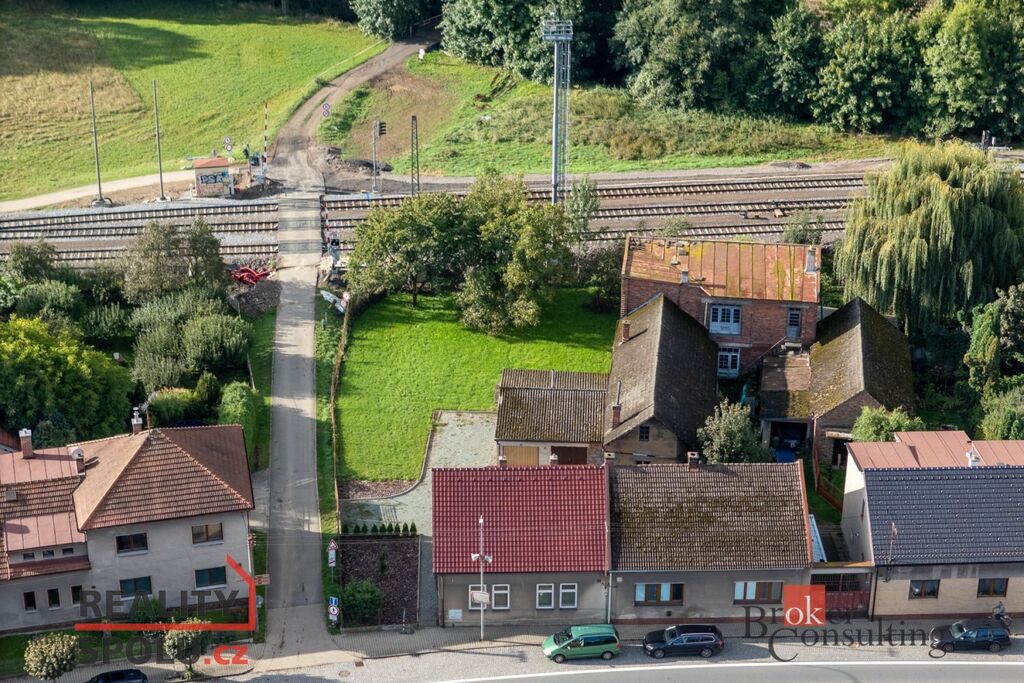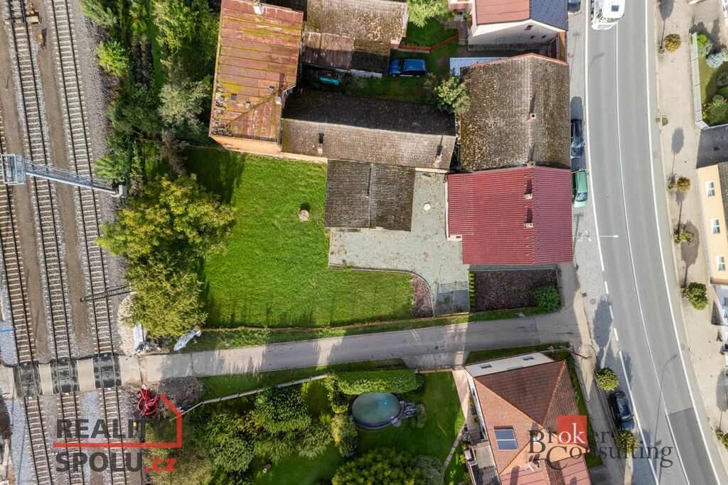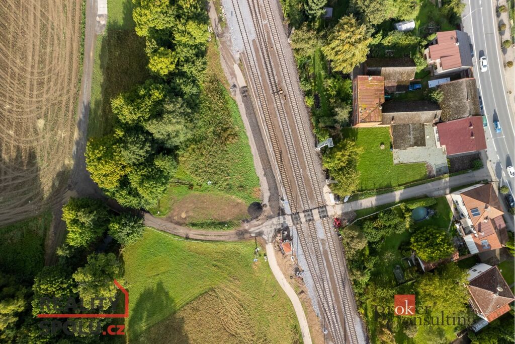 Pozemek u domu má 946 m² a pohodlně se sem dostanete autem přímo až k domu. Součástí prodeje je i další pozemek o rozloze 567 m², který se nachází za kolejemi a je vedený jako trvalý travní porost. Část pozemku je v současné době pronajata a to z důvodu probíhající rekonstrukce železniční tratě za domem.