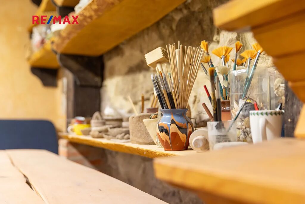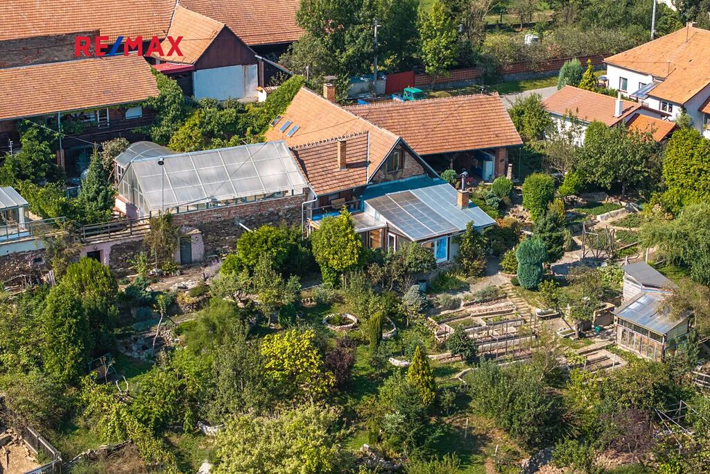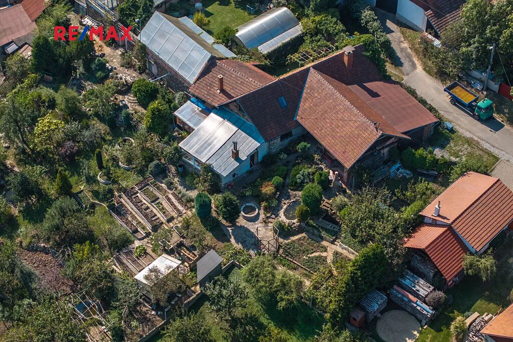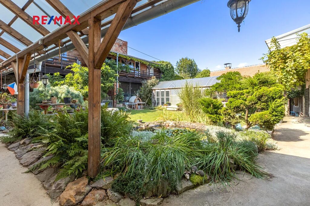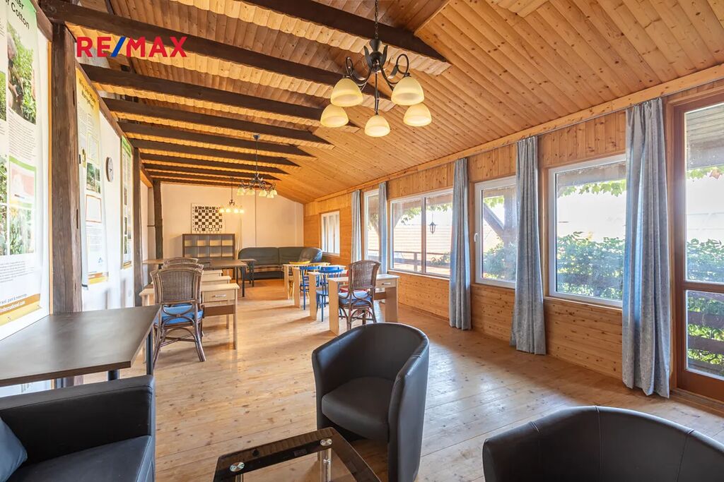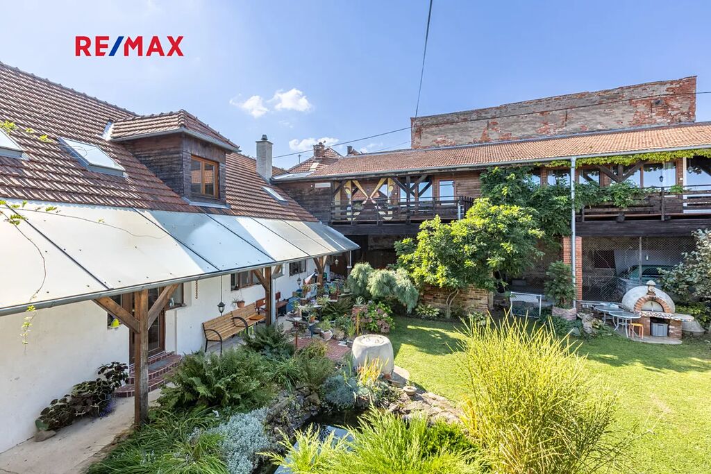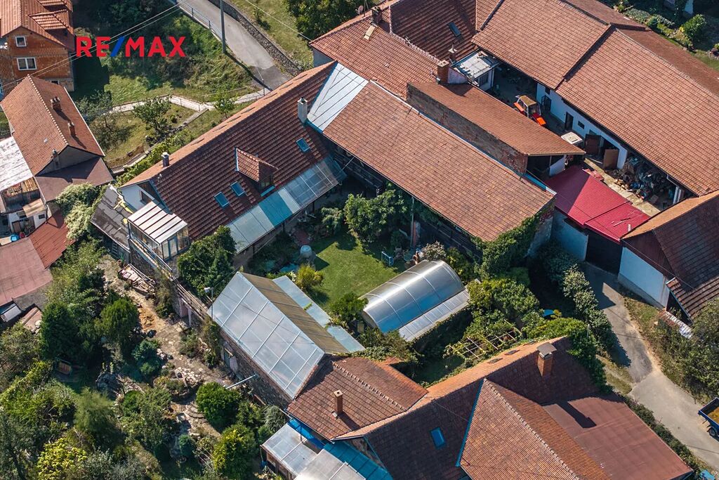 Dominantou areálu je hlavní rodinný dům o ploše více než 400 m², ve kterém najdete 9 obytných místností, 4 koupelny, kuchyň s kachlovými kamny a zimní zahradu s přímým vstupem na venkovní terasu. Tento dům poskytuje dostatek prostoru pro velkou rodinu i možnost samostatného bydlení pro více generací. Díky propojení s vedlejší budovou je možné flexibilně rozšířit obytnou část nebo využít přilehlé místnosti například jako pracovny, ateliéry nebo pokoje pro hosty.