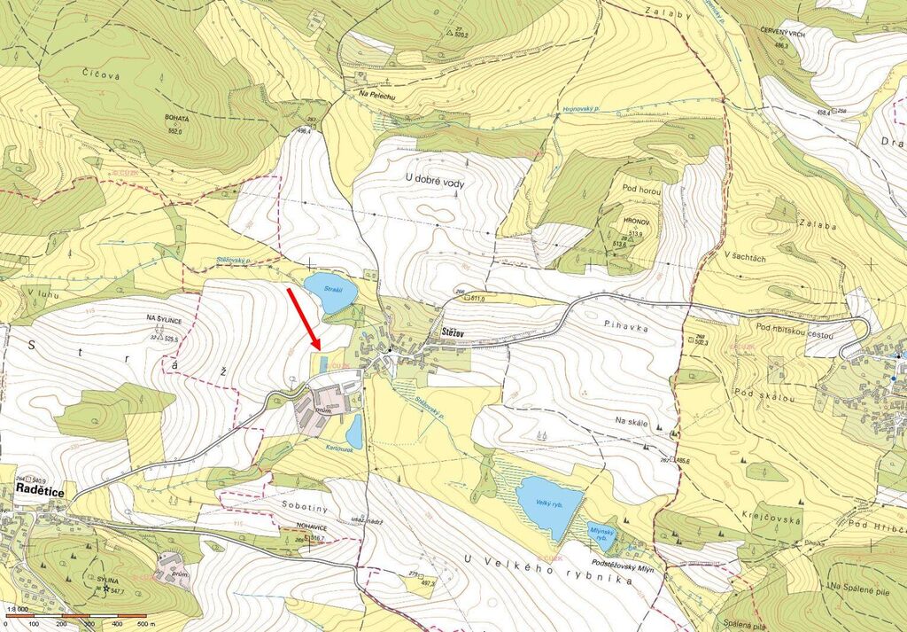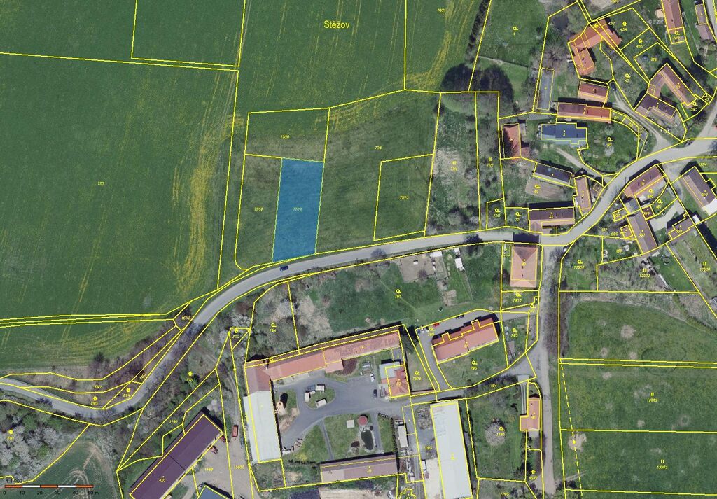 Pozemek je v katastru veden jako orná půda a je částečně určen pro výstavbu rodinného domu venkovského charakteru (cca polovina plochy). Nachází se v malebné vesnici Stěžov, cca 16 km od města Příbram. V současnosti je pozemek obhospodařován formou pachtu s roční výpovědní lhůtou. Přístup je zajištěn z místní komunikace. Inženýrské sítě nebyly řešeny.