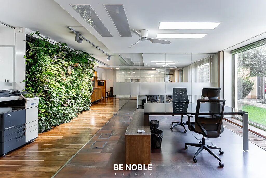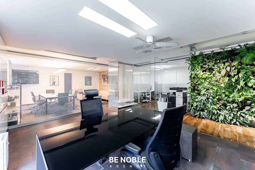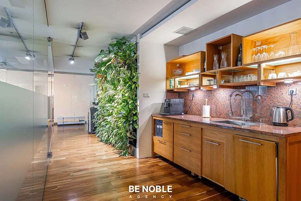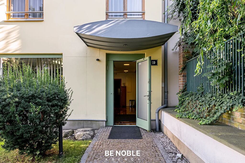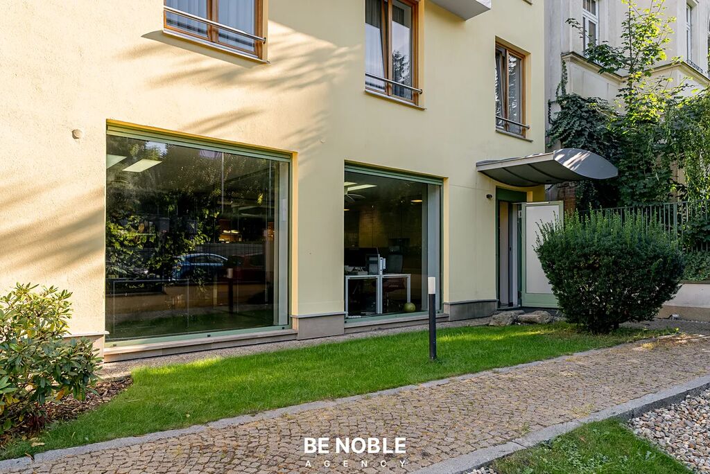 Budova, ve které se kancelář nachází, je z roku 2005, však už tehdy se jednalo o luxusní novostavbu, která je výborně udržovaná a dodnes působí reprezentativním dojmem. Společné prostory jsou udržované, k parkovacím stáním se jezdí výtahem a budova i kancelář má bezbariérový přístup. Přičemž kancelář má vlastní přístup jak ze společné zahrady, tak z ulice, a je zde i možnost umístění svítící cedule s názvem firmy. Navíc ve vnitrobloku domu je další zelená zahrada s posezením pro společné užívání.