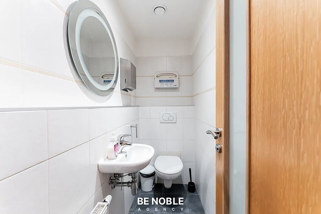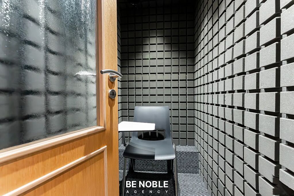 Dispozici doplňují samostatná odhlučněná telefonní budka, která je ideální pro soukromé hovory či online meetingy, dvě oddělené toalety a technická místnost.