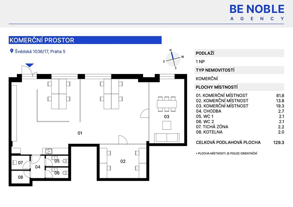 Nabízíme k prodeji moderní, hezky prosvětlený a plně vybavený kancelářský prostor o užitné ploše 123 m², který se nachází v prestižní a velmi žádané lokalitě Prahy 5 – Smíchov, jen pár kroků od Anděla. Jedná se o prostor, který spojuje atraktivní adresu, promyšlenou dispozici a nadstandardní provedení, a je vhodný pro cca 15 osob.