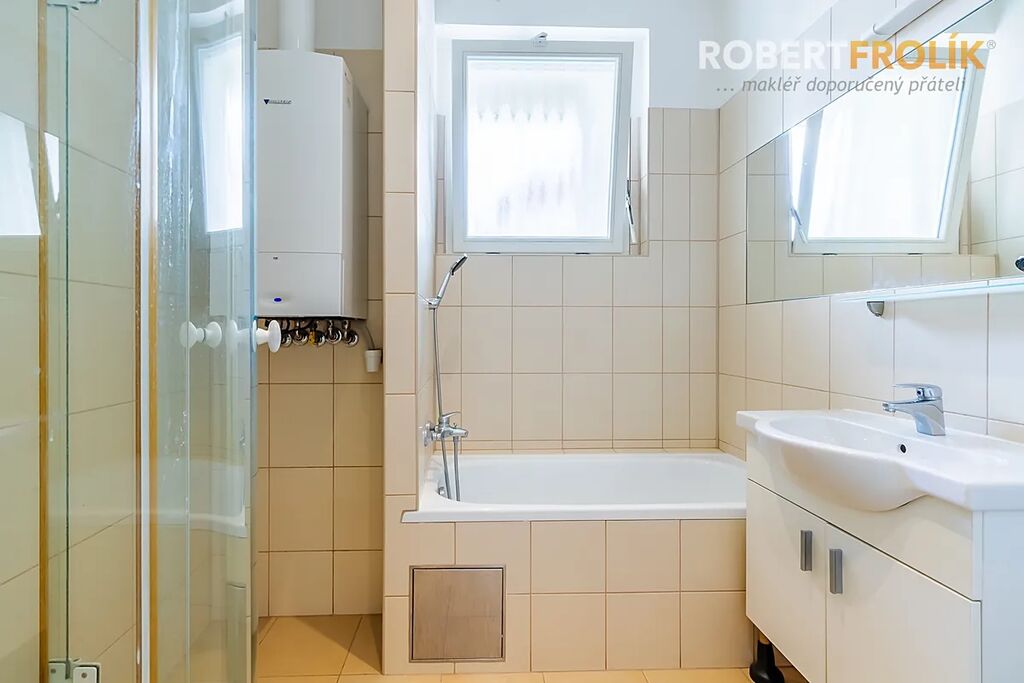 Je vytápěn vlastním plynovým kombi kotlem, který ohřívá i teplou vodu. V kuchyni zůstane myčka, sklokeramická varná deska, elektrická trouba a digestoř. Může být i pračka. V koupelně je kromě vany a sprchového koutu i bidet. Obě WC jsou samostatné.