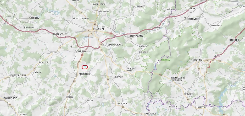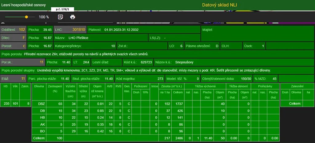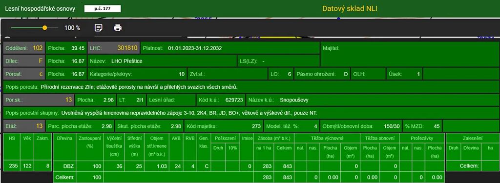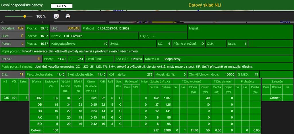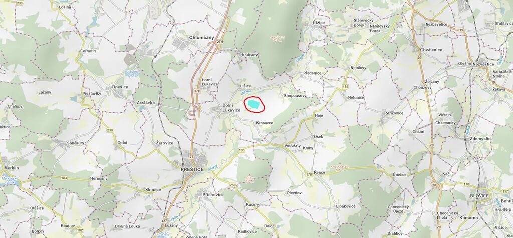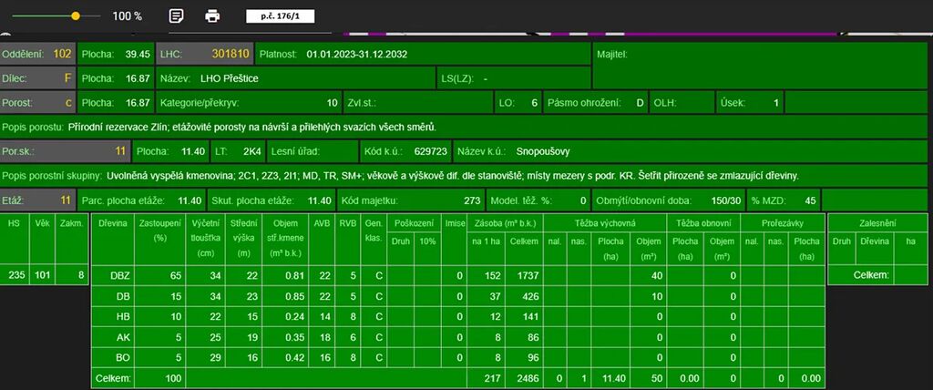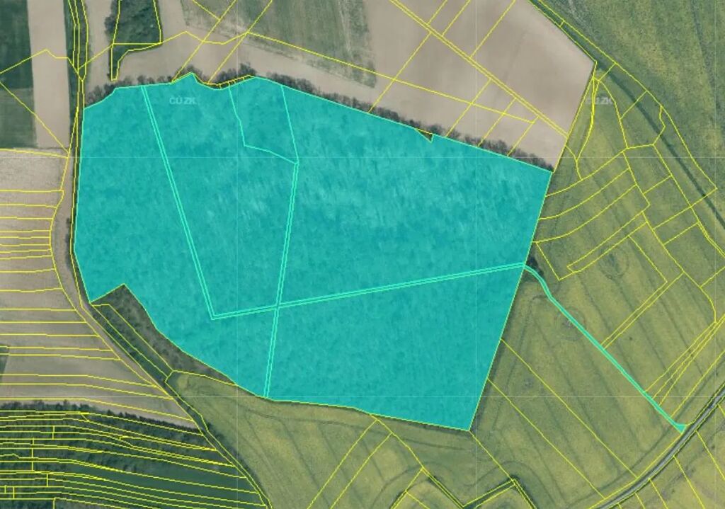 Jedná se o p.č 176/1 lesní pozemek o výměře 54 475 m2 z toho vlastníme 1/4 podílu tedy 13 619 m2.