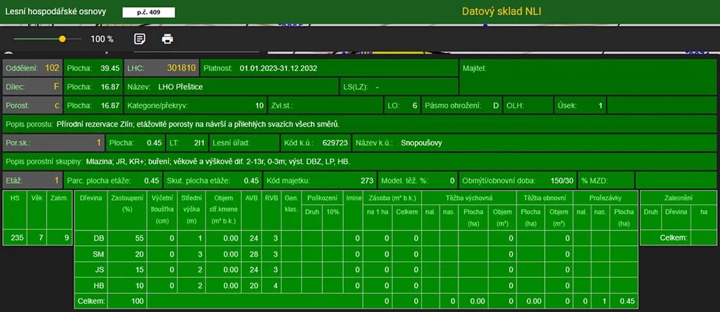Dále p.č. 409 lesní pozemek o výměře 5 331 m2 z toho vlastníme podíl 1/4 tedy 1333 m2.