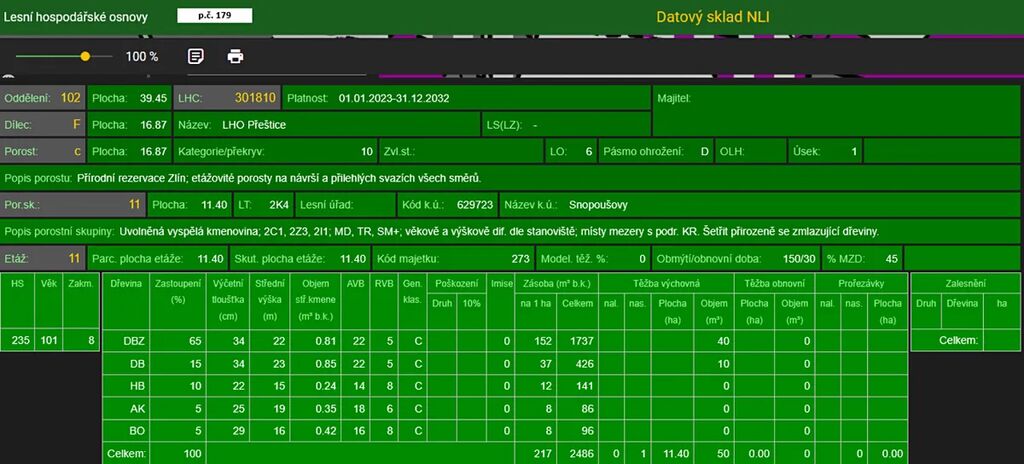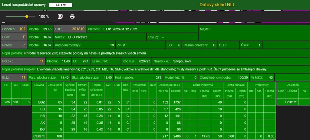 Dále p.č. 179 lesní pozemek o výměře 40 755 m2 z toho vlastníme 1/4 podílu což činí 10 189 m2.
