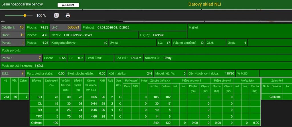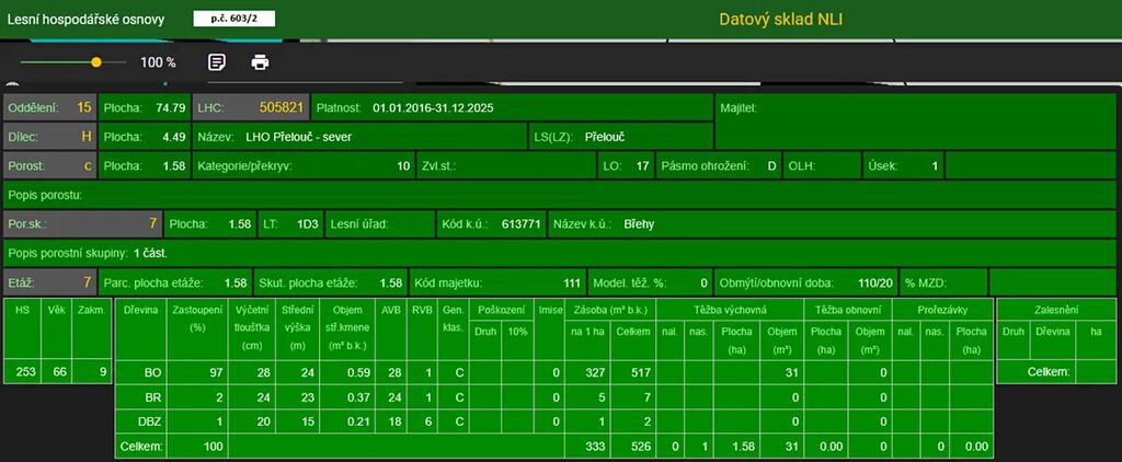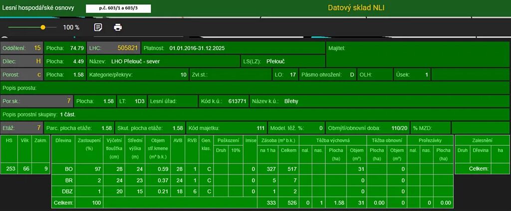 Dále se jedná o p.č. 603/2 vedená jako lesní pozemek o celkové výměře 10 114 m2, vlastníme podíl 1/3 tedy 3 371 m2.