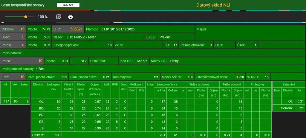 Dále se jedná o p.č. 723 vedená jako lesní pozemek o celkové výměře 2 184 m2, vlastníme podíl 1/3 tedy 728 m2.