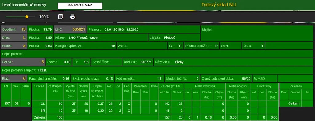 Dále se jedná o p.č. 724/1 vedená jako lesní pozemek o celkové výměře 3 536 m2, vlastníme podíl 1/3 tedy 1 179 m2 a p.č. 724/2 vedená jako lesní pozemek o celkové výměře 522 m2, vlastníme podíl 1/3 tedy 174 m2.