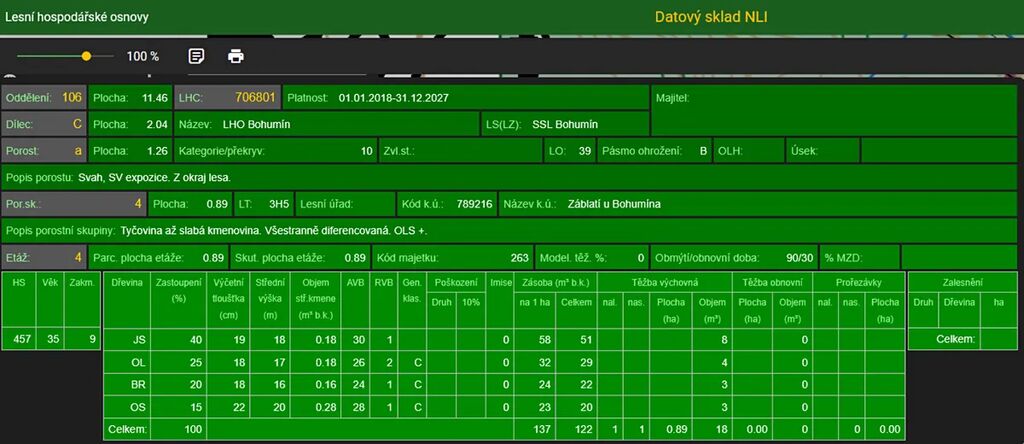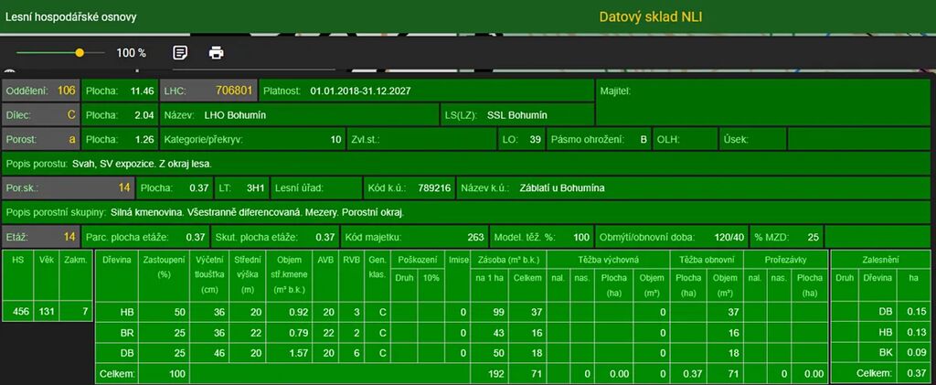 Jedná se o p.č. 1454/28 vedená jako lesní pozemek o celková výměře 12 496 m2.