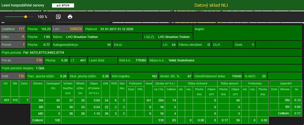 Dále se jedná o p.č. 877/2 vedená jako lesní pozemek o celkové výměře 2 039 m2 a p.č. 877/4 vedená jako lesní pozemek o celkové výměře 2 657 m2.