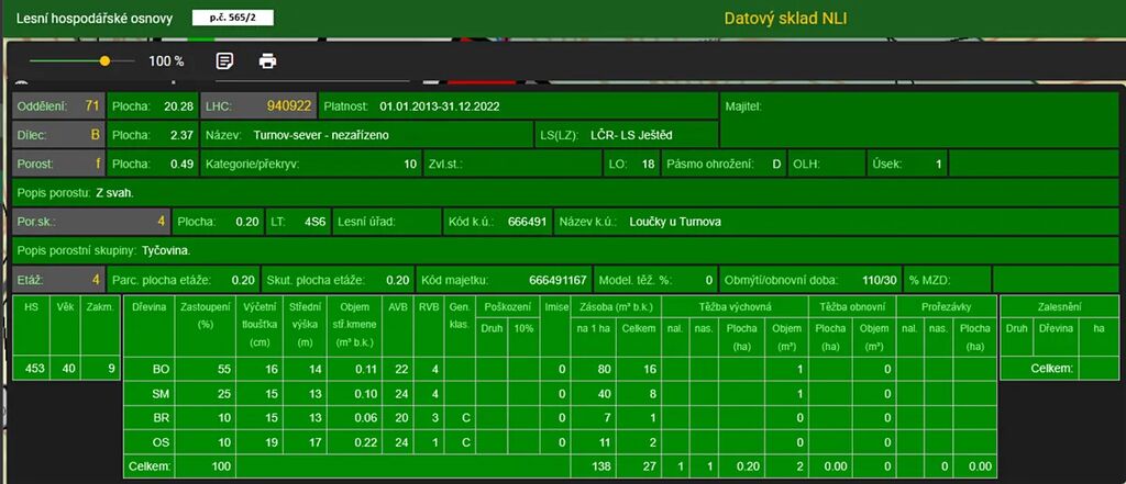 Jedná se o parcelu č. 565/2 vedená jako lesní pozemek o celkové výměře 2 614 m2.