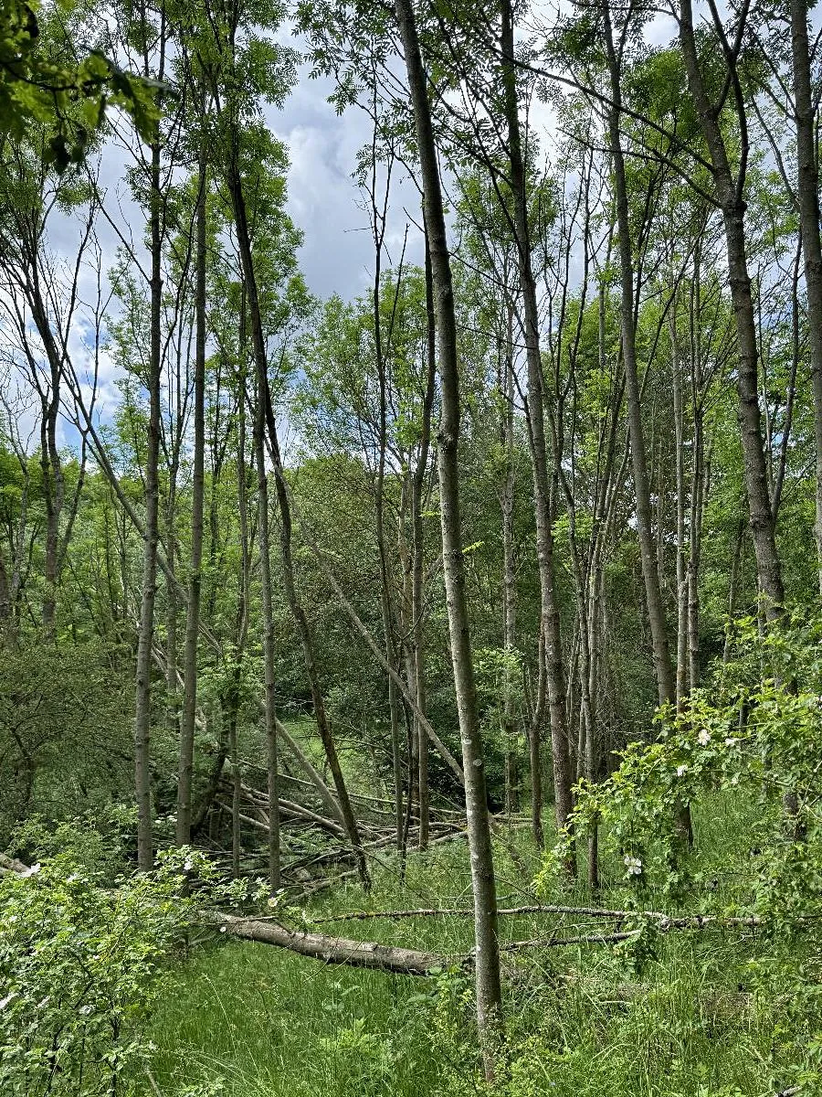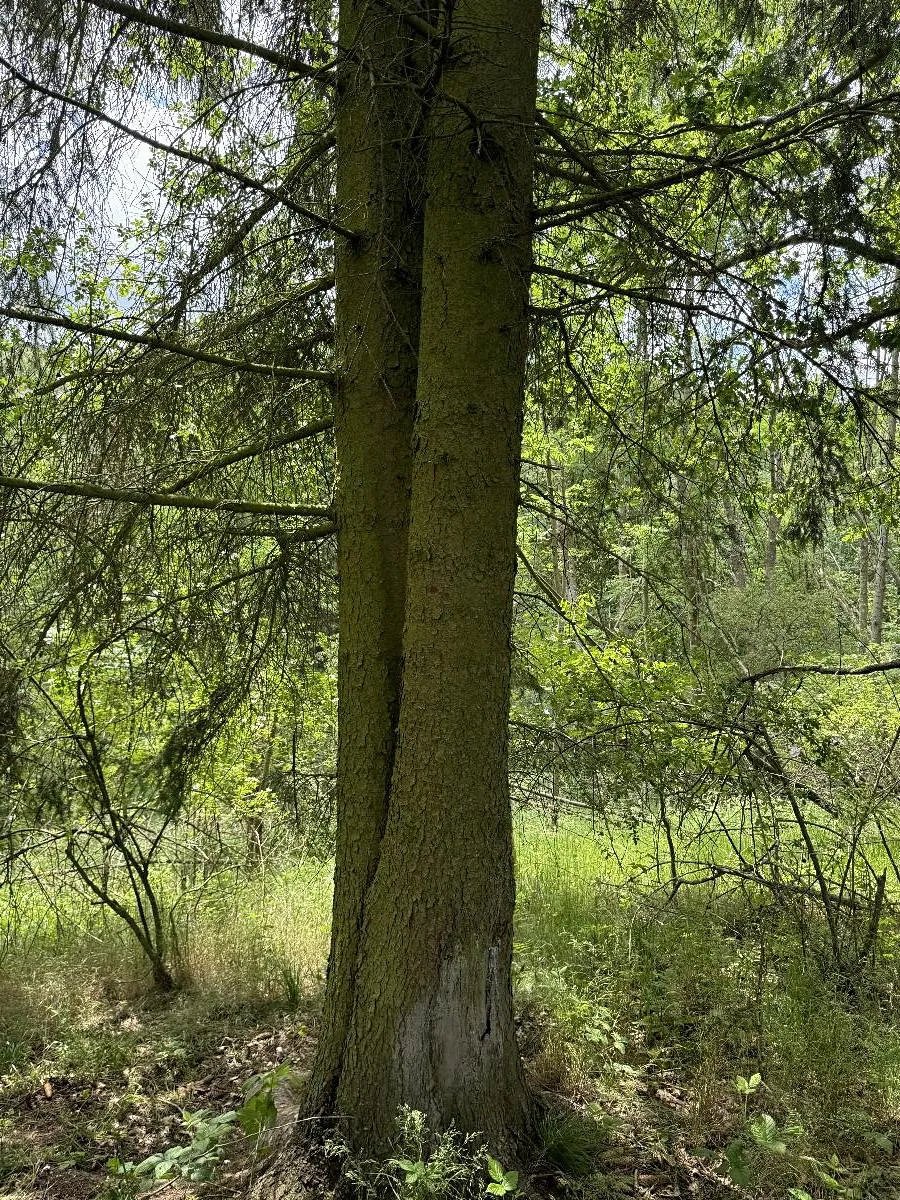 Dále p.č. 212 vedená jako lesní pozemek o celkové výměře 2 679 m2 z toho vlastníme podíl 1/3 tedy 893 m2. Stáří lesa a LHO viz. foto.